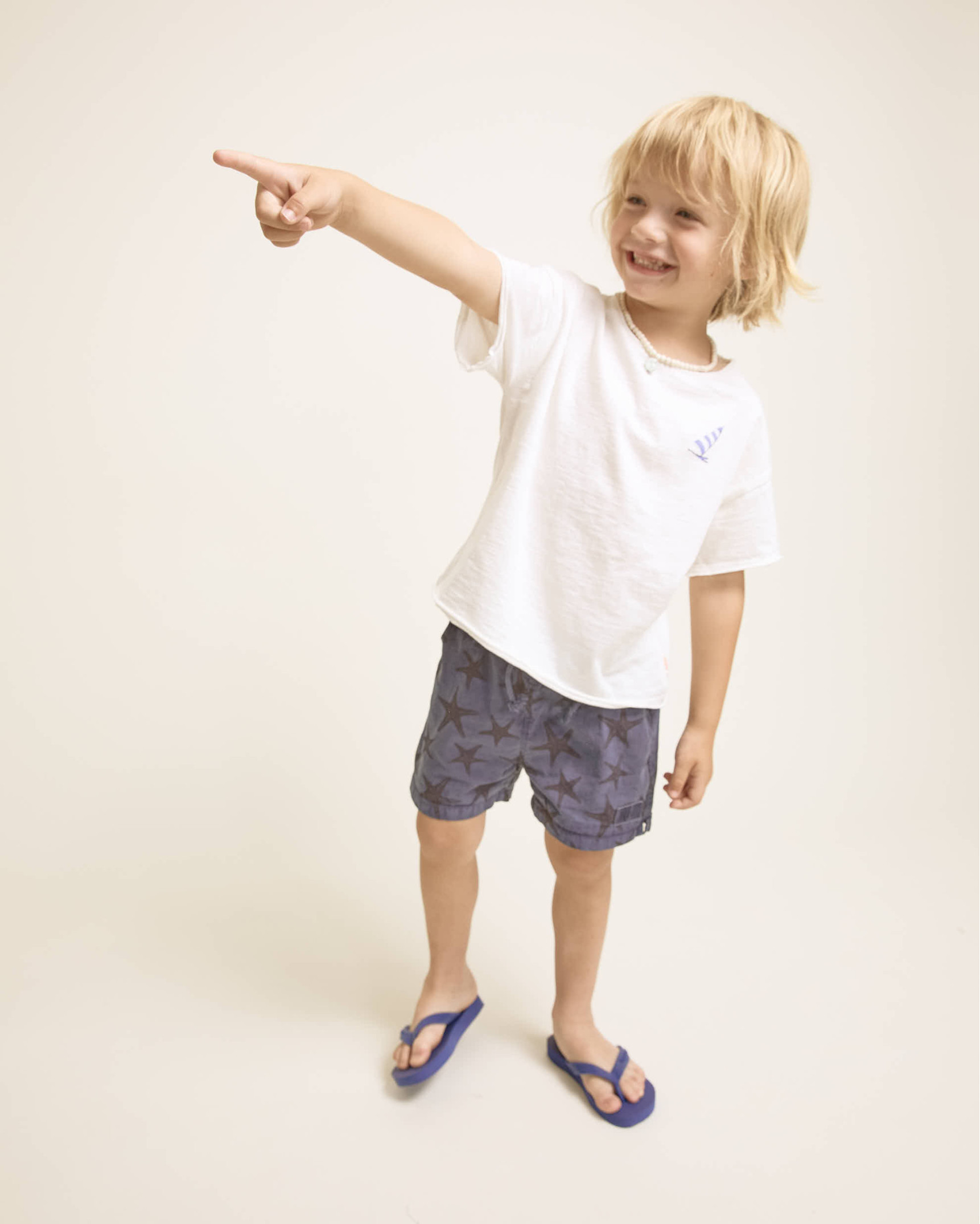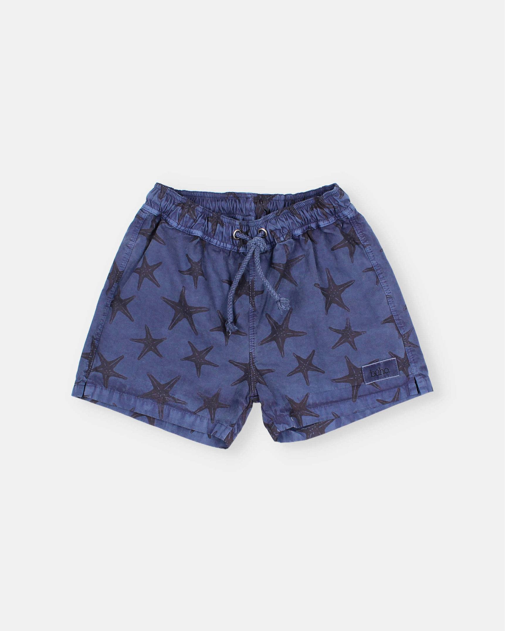 Organic cotton swimsuit with octopus print. Elastic waistband for a better fit. Adjustable raw cotton drawstring at the waistband. Decorative label at the hem. Plastron-style pocket at the back. Inner mesh lining.
