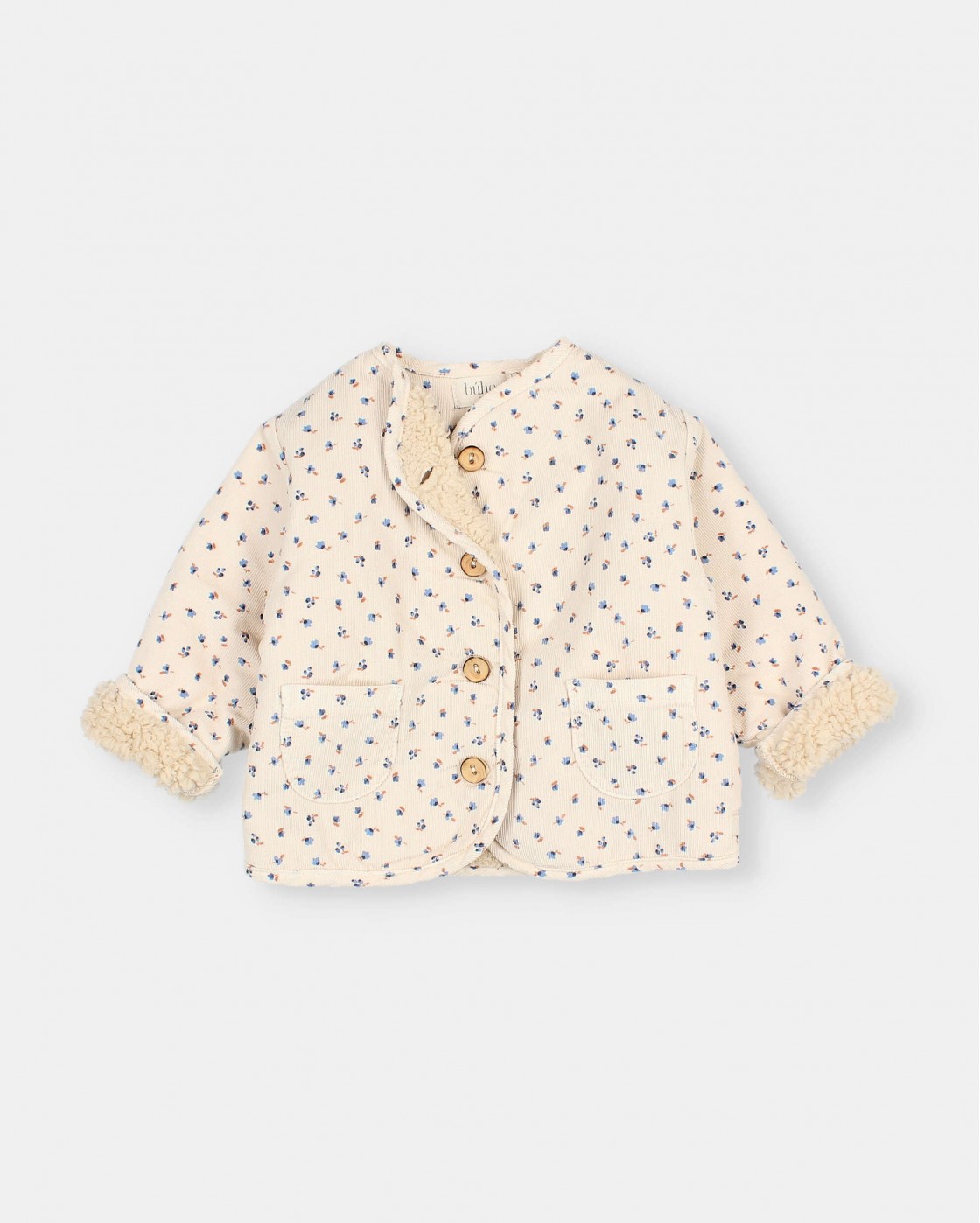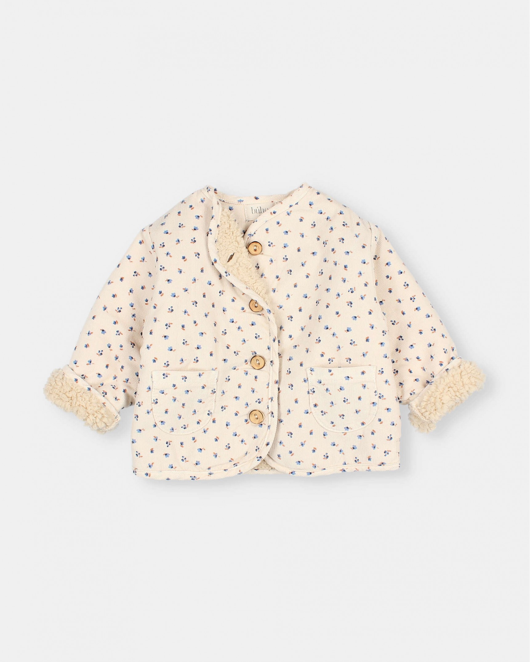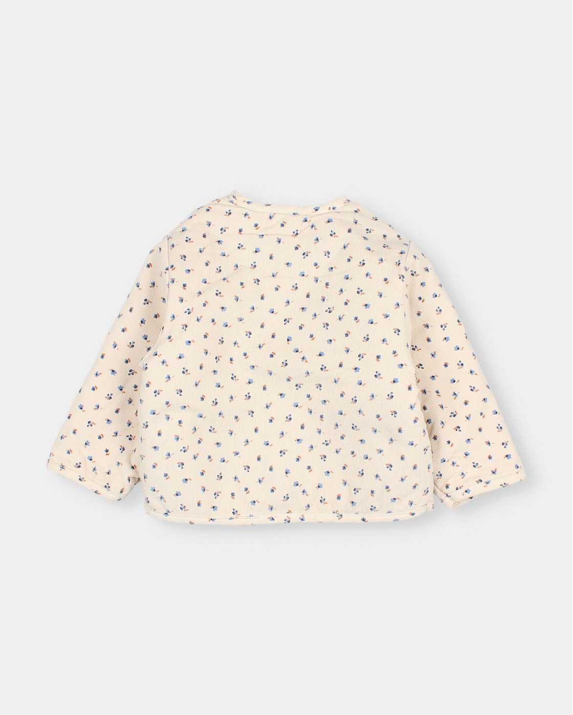 Velvet sweatshirt with embroidery flower detail in chest. Round neck with teardrop fastening at the back. Ruffled shoulders. Soft elastic band in hem with gathers.