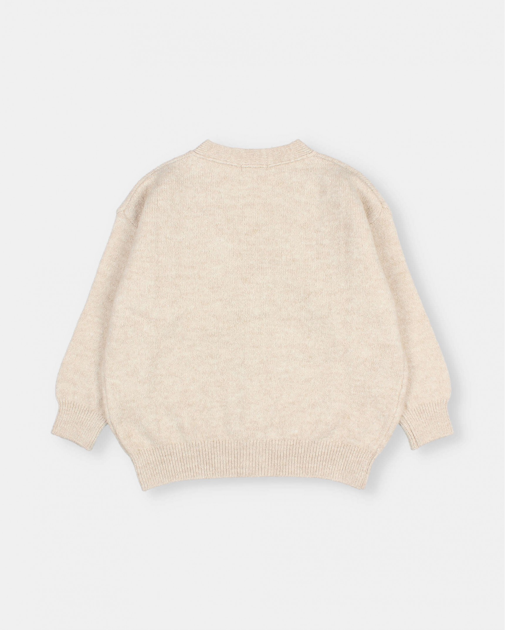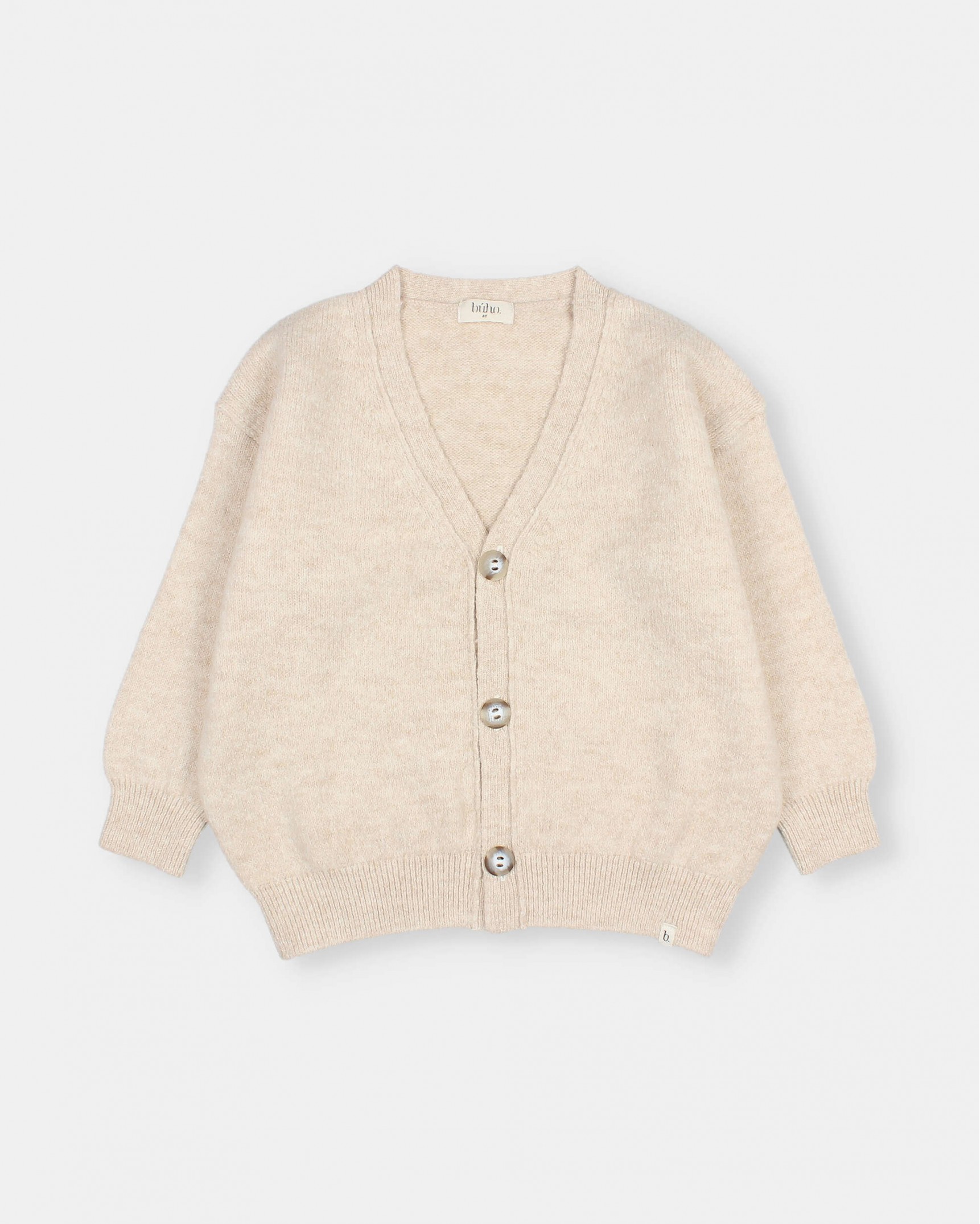 Melange knitted cardigan. Button fastening on the front. V-neck. Ribbed cuffs and hem. Tab label detail on hem.