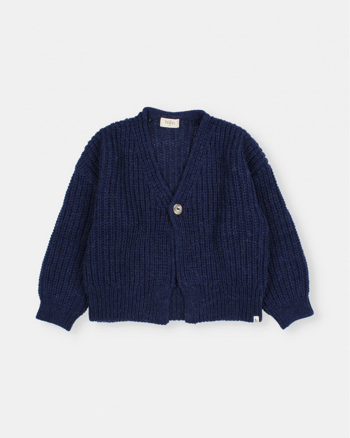 Soft knit cardigan. V-neck. Front button fastening. Ribbed cuffs and hem. Tab label detail on hem.