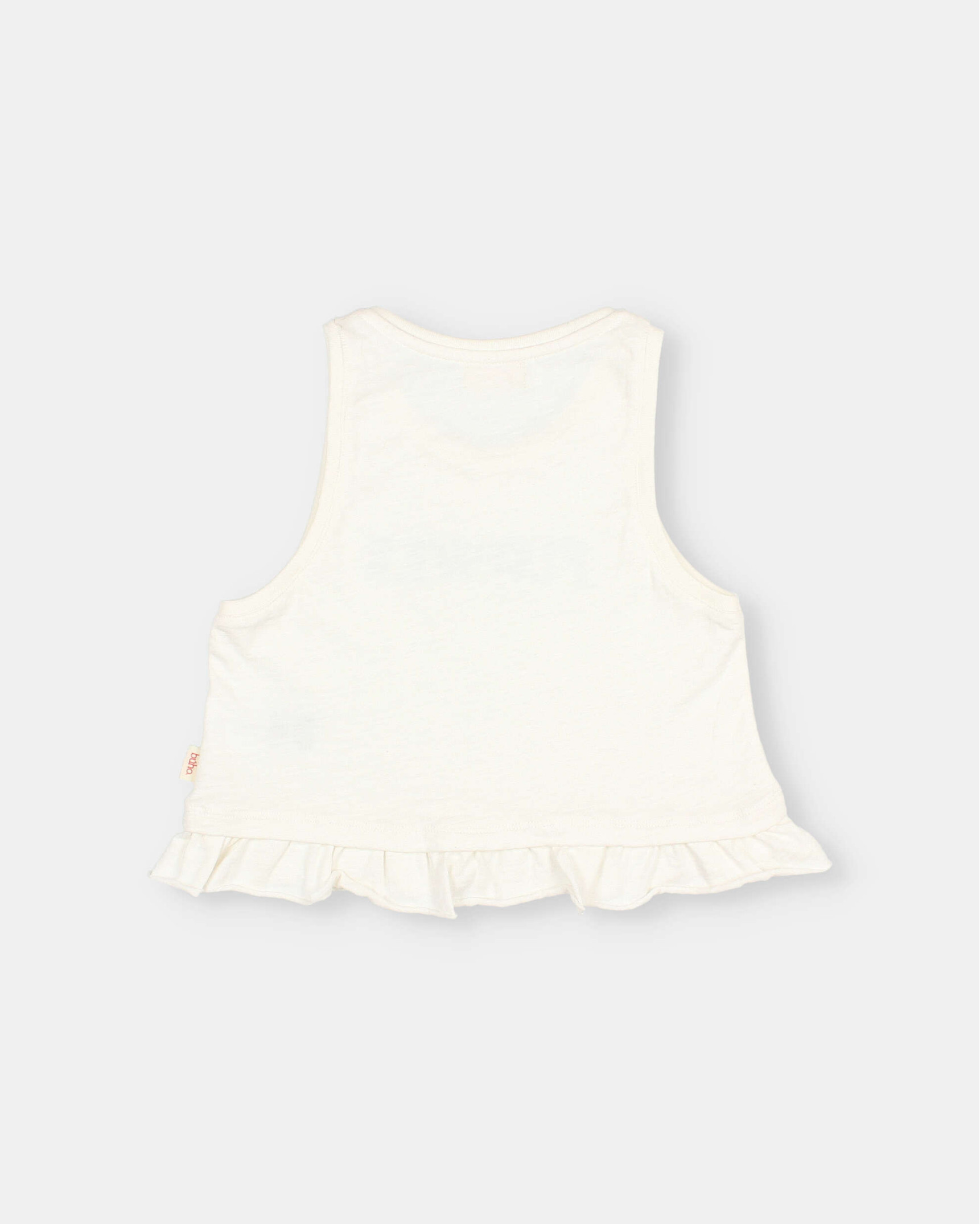 Organic cotton tank top with flower print. Ruffled hem. Round neckline.