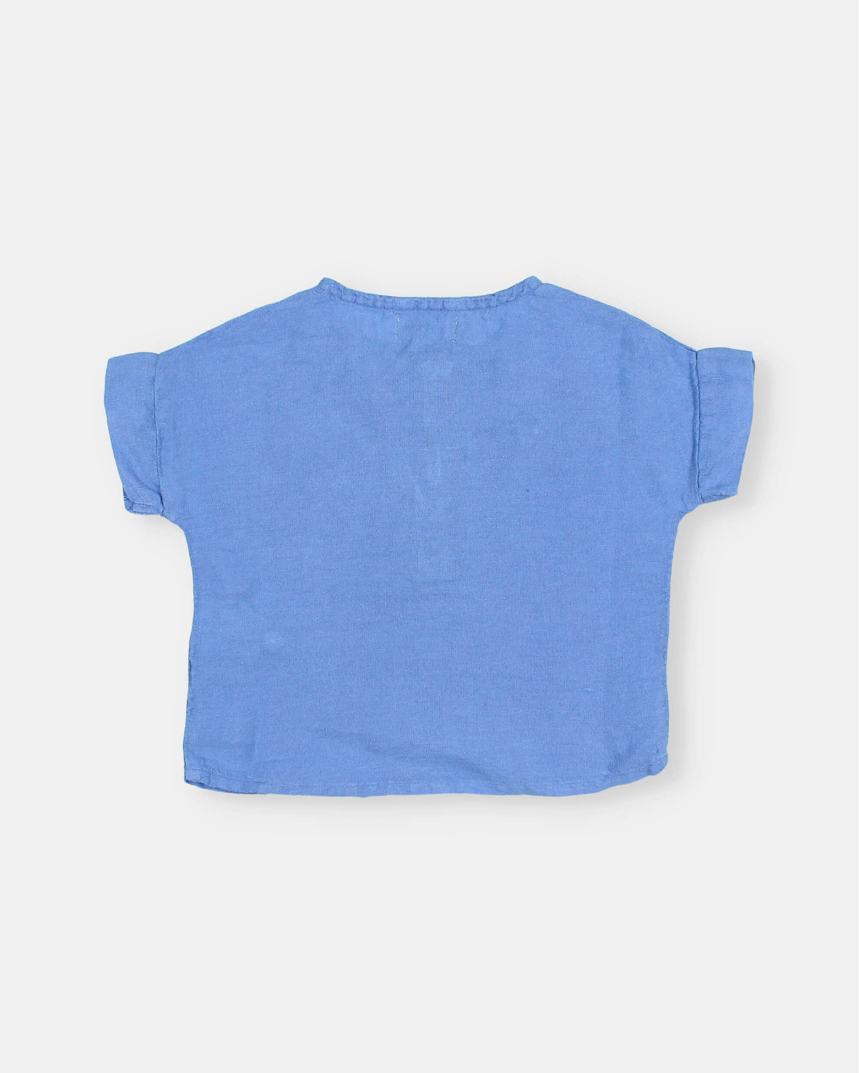 100% linen shirt with a soft washed effect and a relaxed feel. Mao collar and long sleeves. Button fastening on the front. Tone-on-tone embroidered detail on the side of the hem.