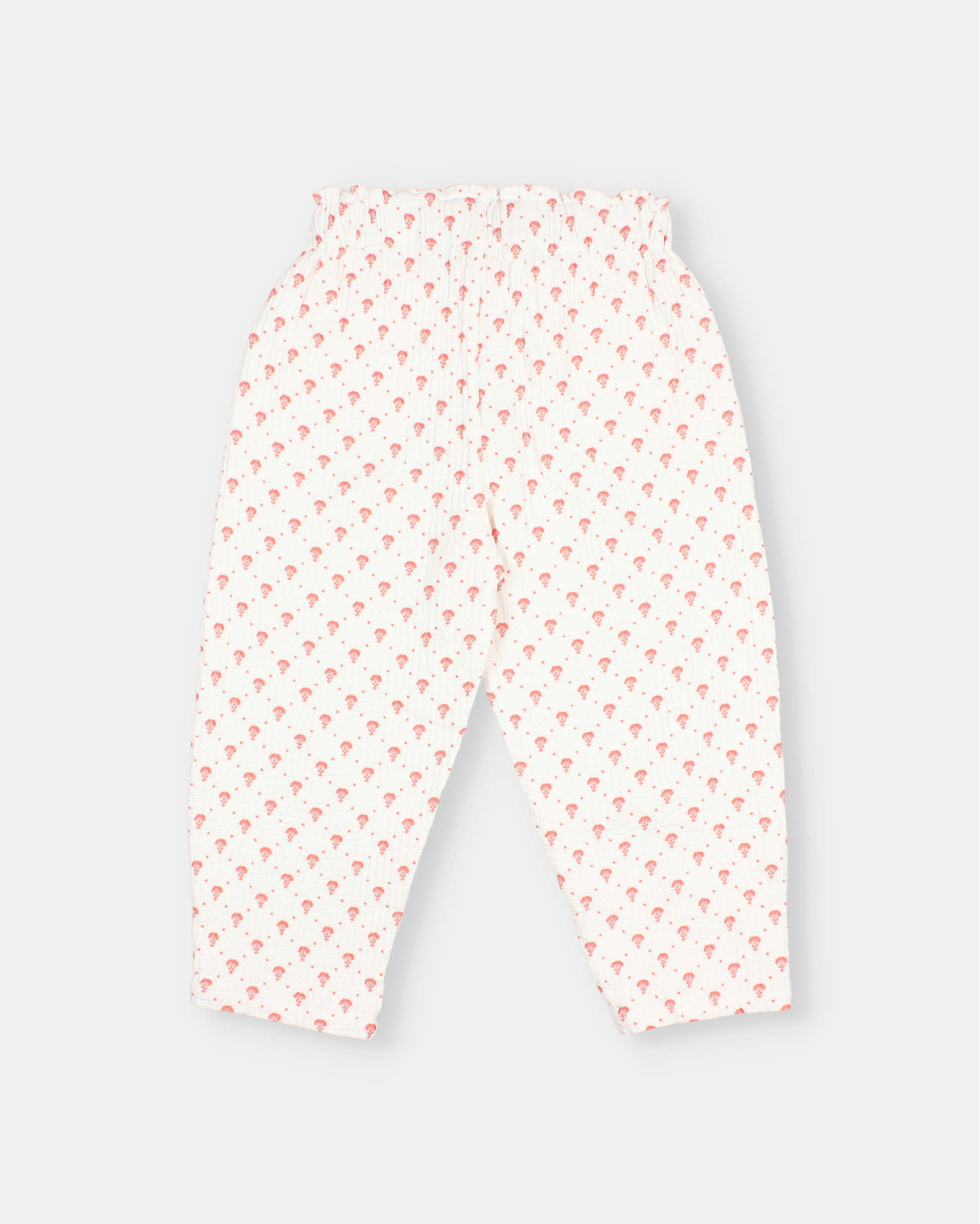 Long cotton pants with Bali print. Elastic waistband with raw cotton ribbon for a better fit. Front pockets.