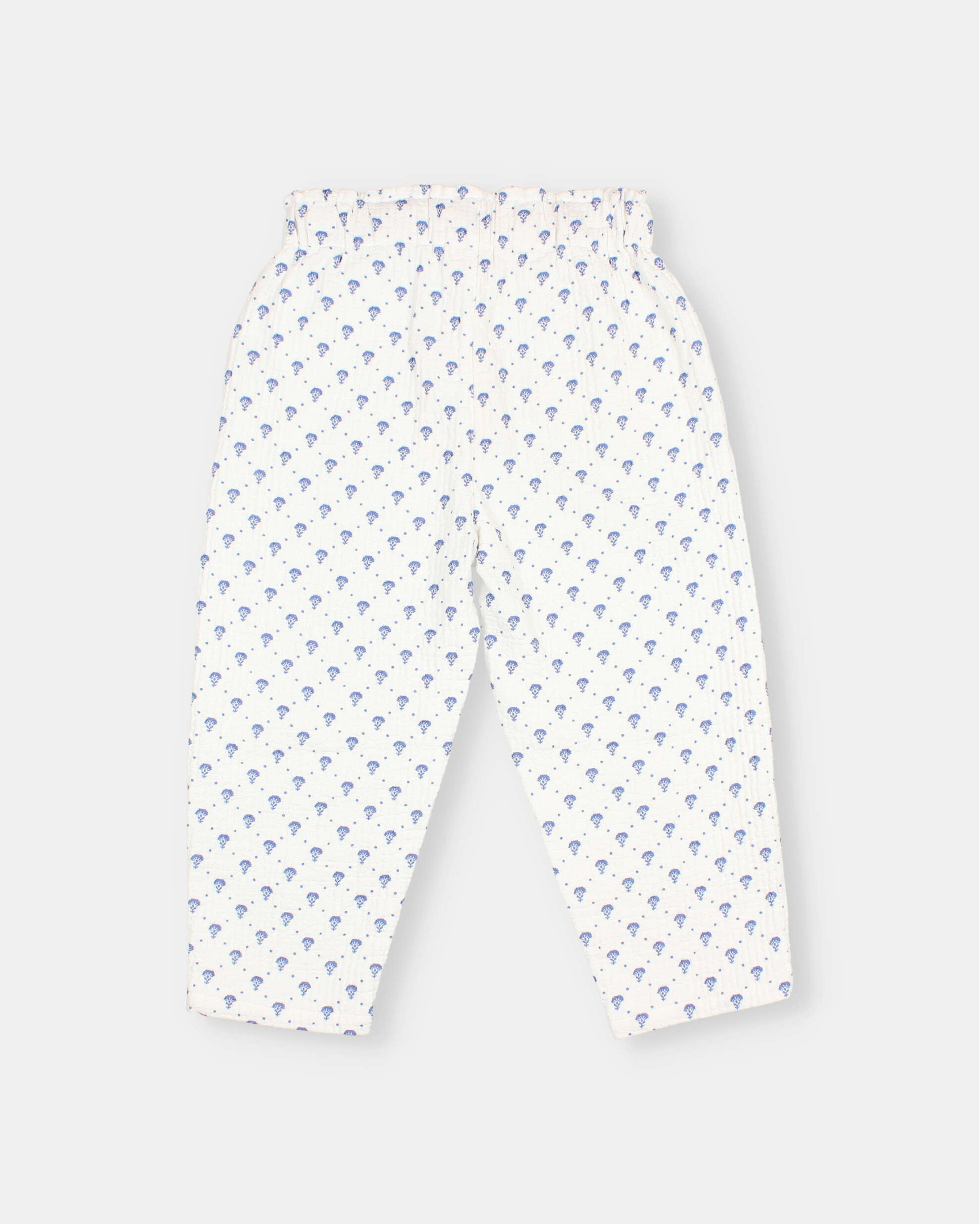 Long cotton pants with Bali print. Elastic waistband with raw cotton ribbon for a better fit. Front pockets.