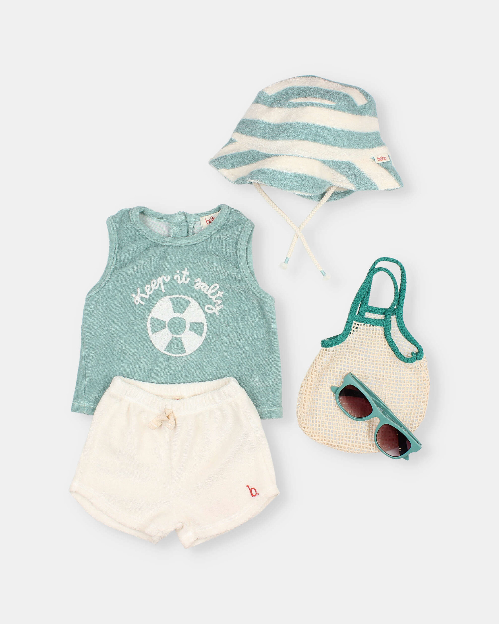 Gorro bob de rizo suave de algodón orgánico tejido a rayas. Cordones de algodón crudo con atacado a contraste para un mejor ajuste al cuello.