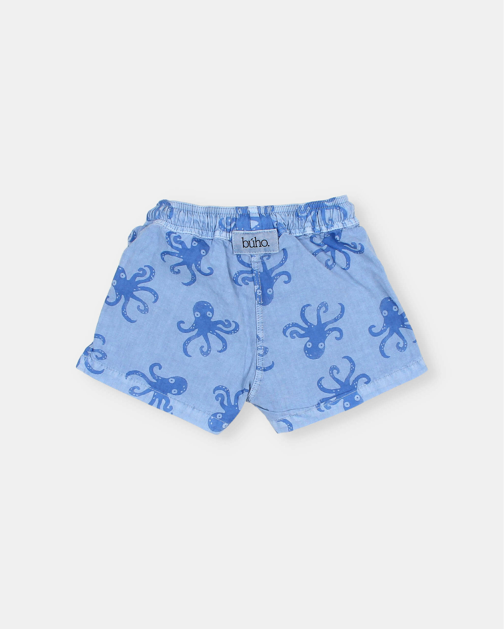 Bañador de algodón orgánico con estampado octopus. Goma elástica en cinturilla para una mejor sujeción. Cordón ajustable de algodón crudo en cinturilla. Etiqueta decorativa en la espalda.