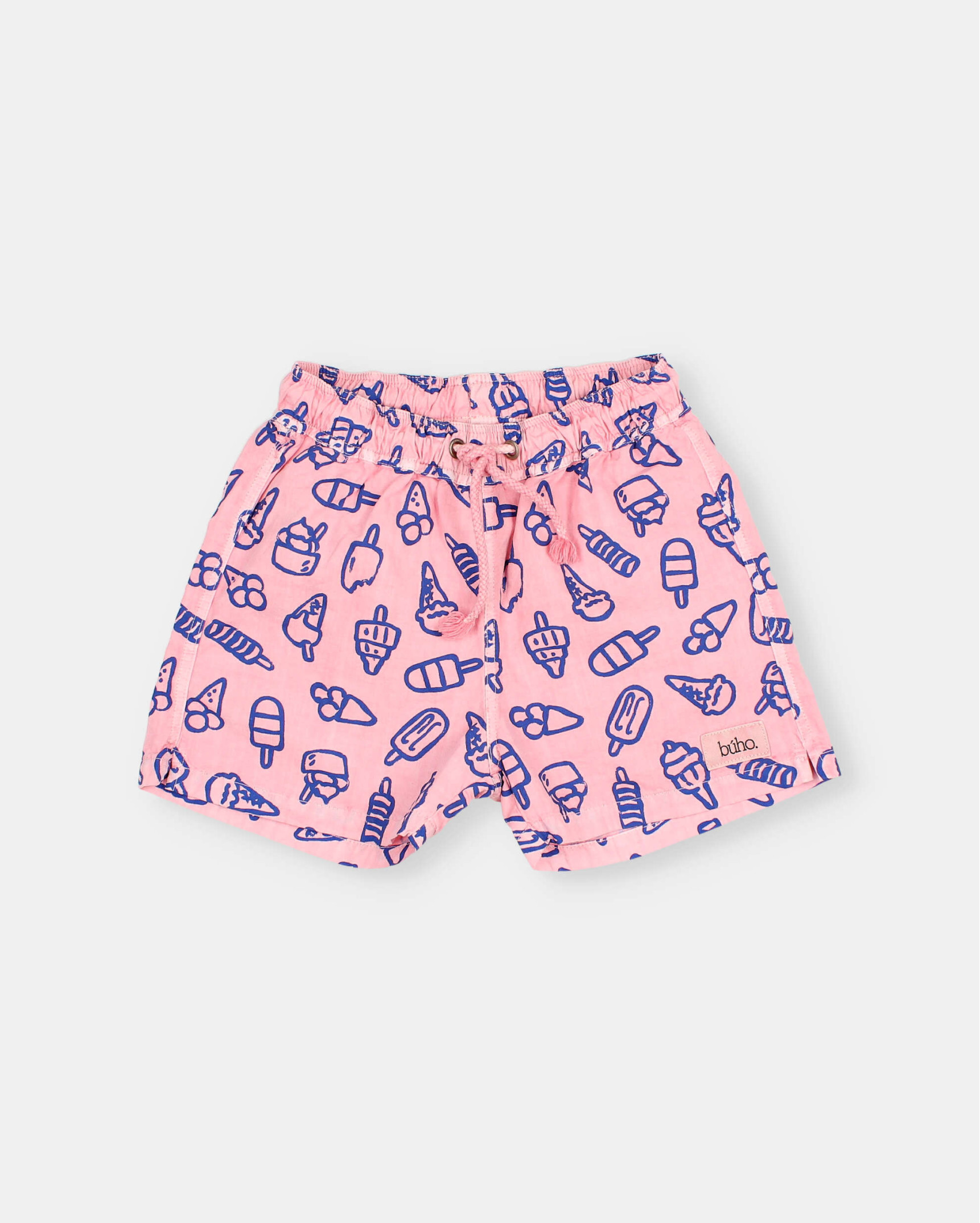 Bañador de algodón orgánico con estampado ice cream. Goma elástica en cinturilla para una mejor sujeción. Cordón de algodón al tono ajustable en cinturilla. Etiqueta decorativa en el bajo. Bolsillo tipo plastrón en la espalda. Rejilla interior.