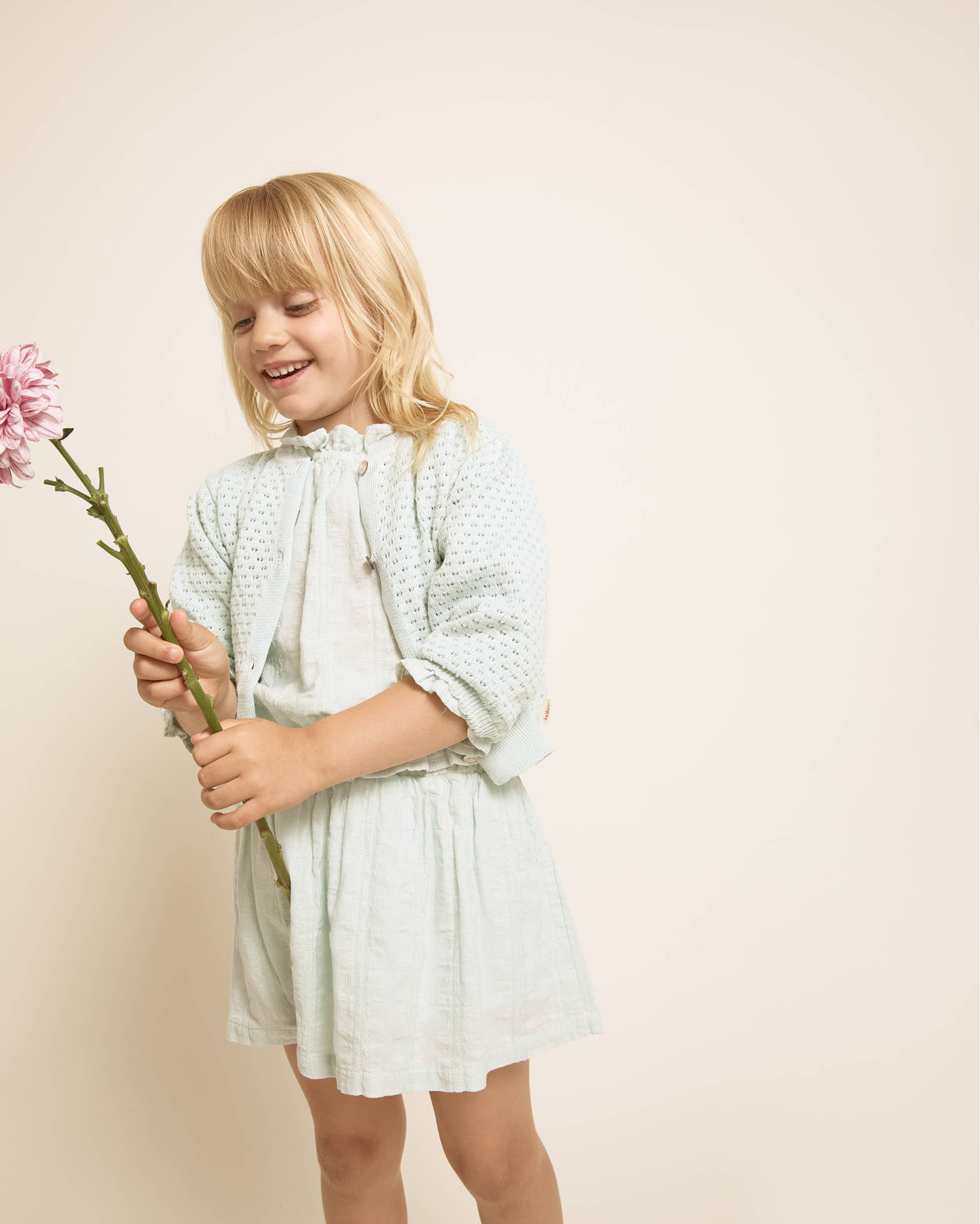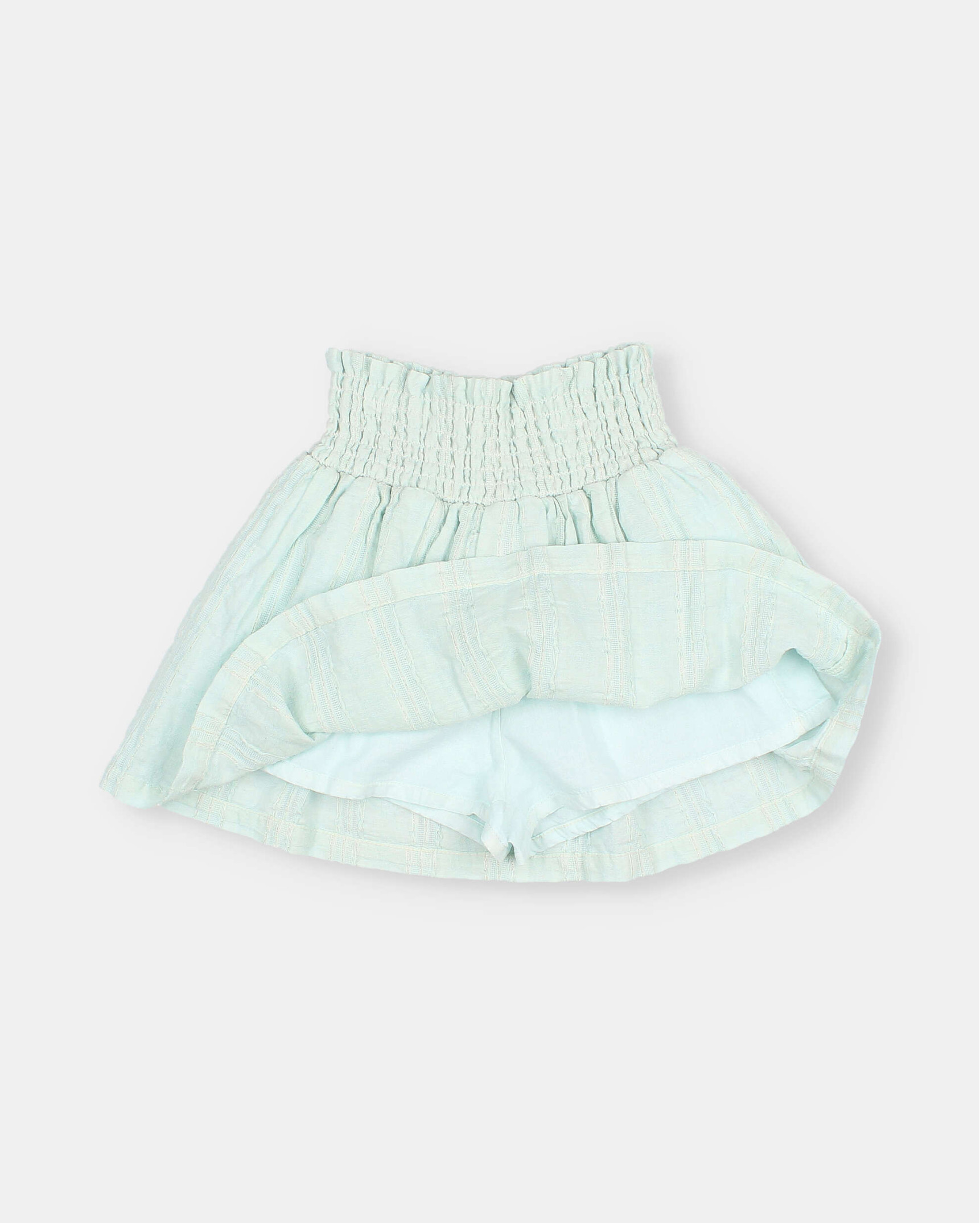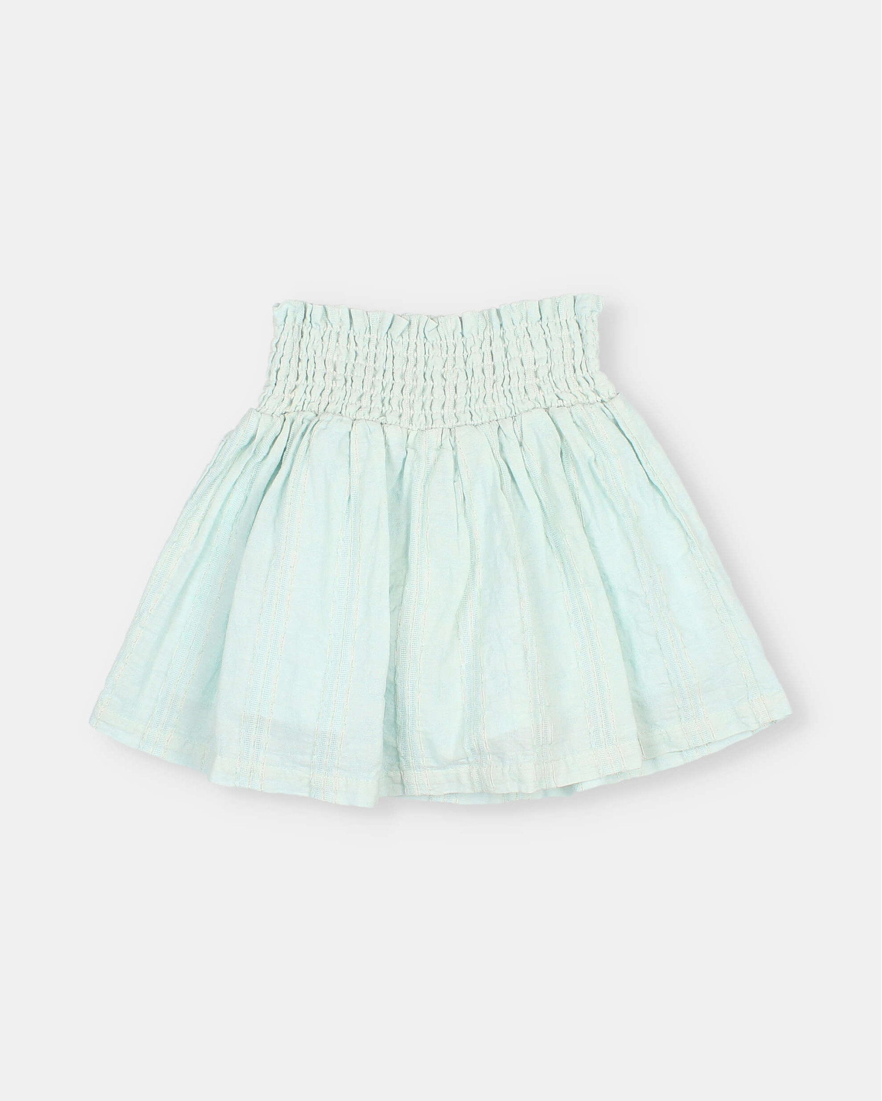 Falda de voile de algodón con jacquard y delicadas rayas de lurex. Cintura con goma elástica. Faldón con vuelo. Forro interior tipo short.