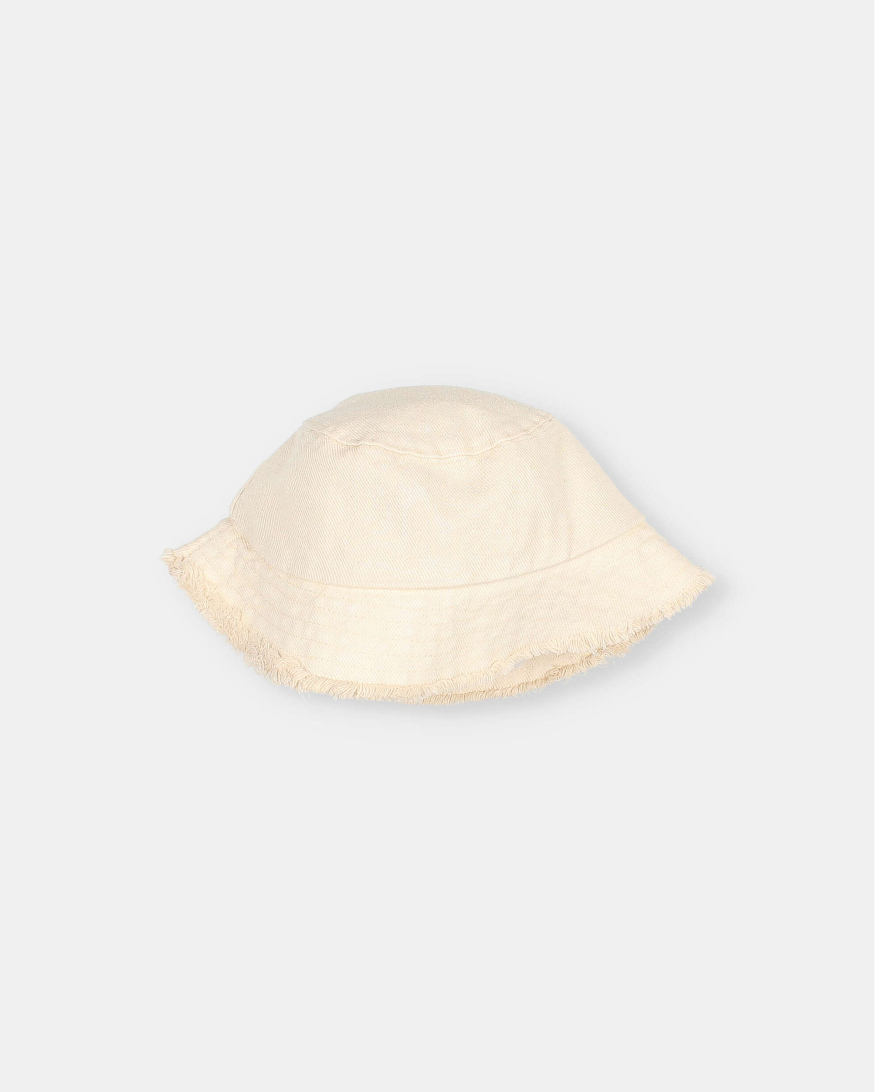 Gorro de sarga con etiqueta decorativa. Acabado deshilachado y detalle atacados a contraste.