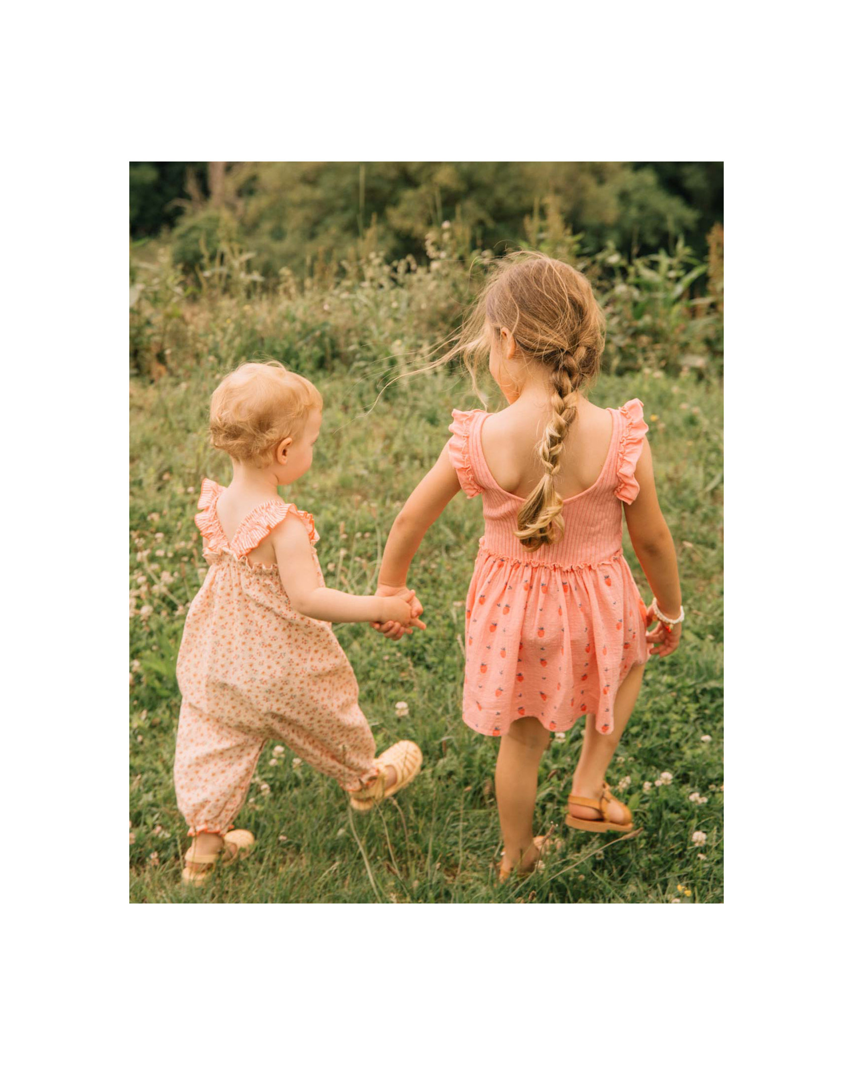 Mono ancho en seersucker de algodón con estampado picnic. Parte superior con goma elástica y fruncido. Tirantes elásticos. Botones de presión en la entrepierna para una puesta fácil. Goma elástica en el bajo. Acabados con repulgo a contraste.